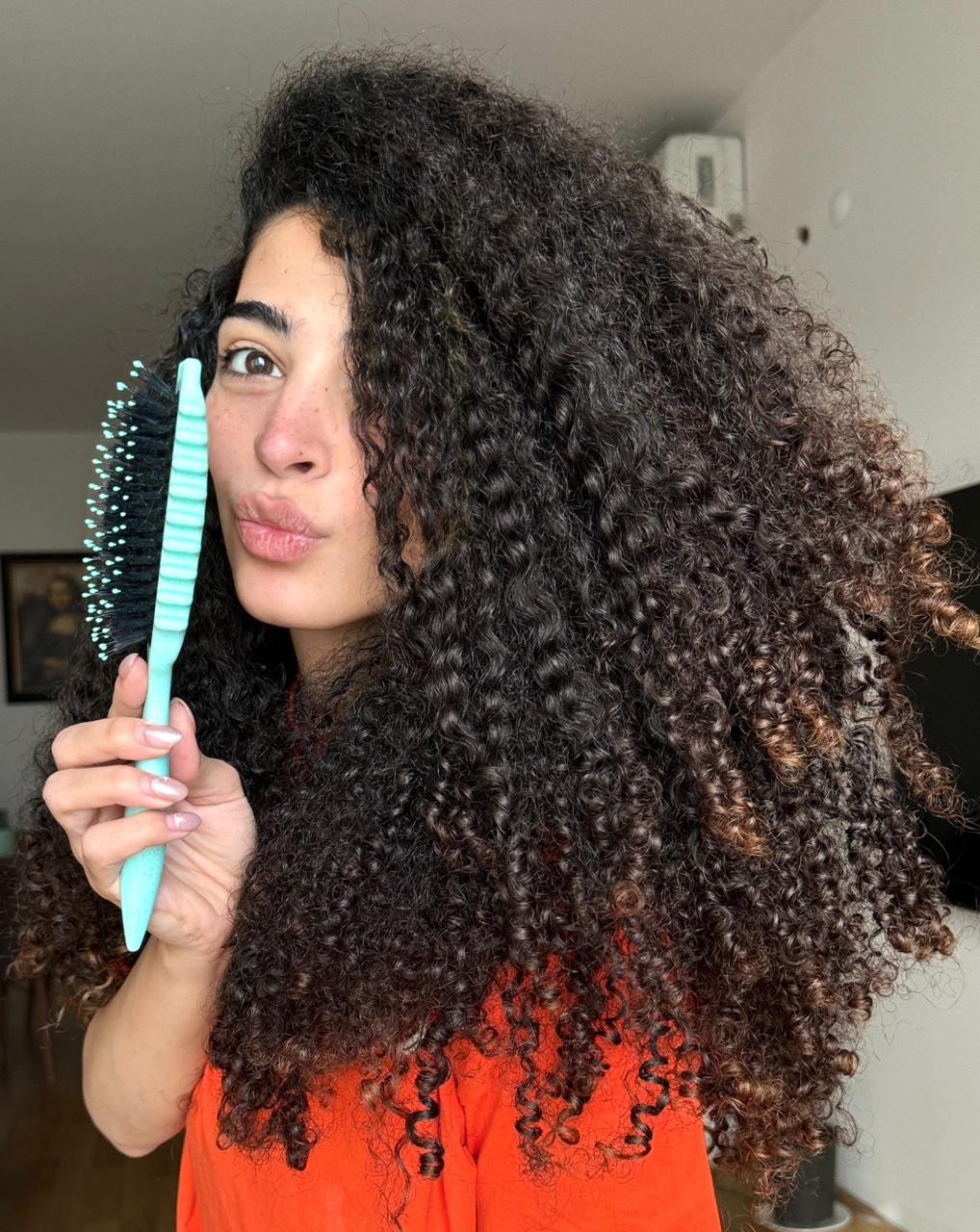 جوانب الفرشة الحززة تفصل الخصل الكيرلي بحيث يتضاعف فوليوم الشعر